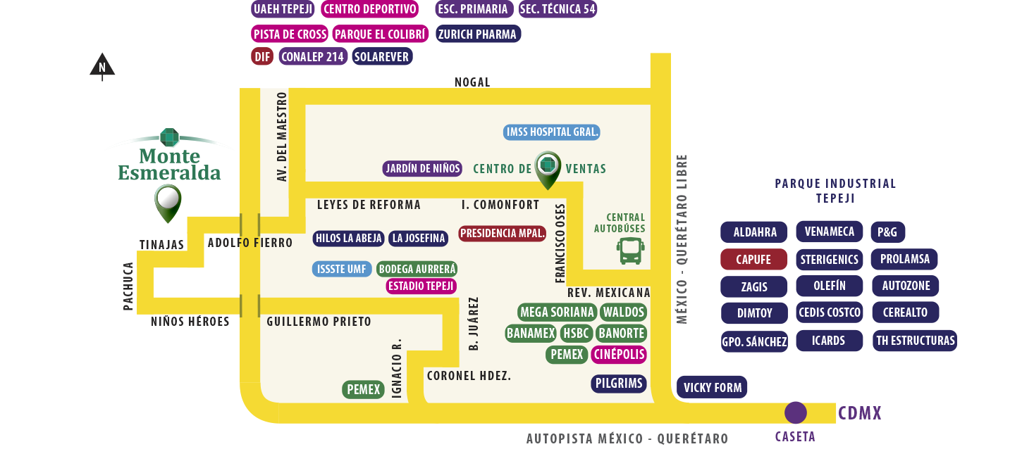 Monte Esmeralda: Km. 72.5 de la Autopista México - Querétaro, Barrio de San Francisco, El Carmen, C.P. 42854, Tepeji del Río, Hidalgo