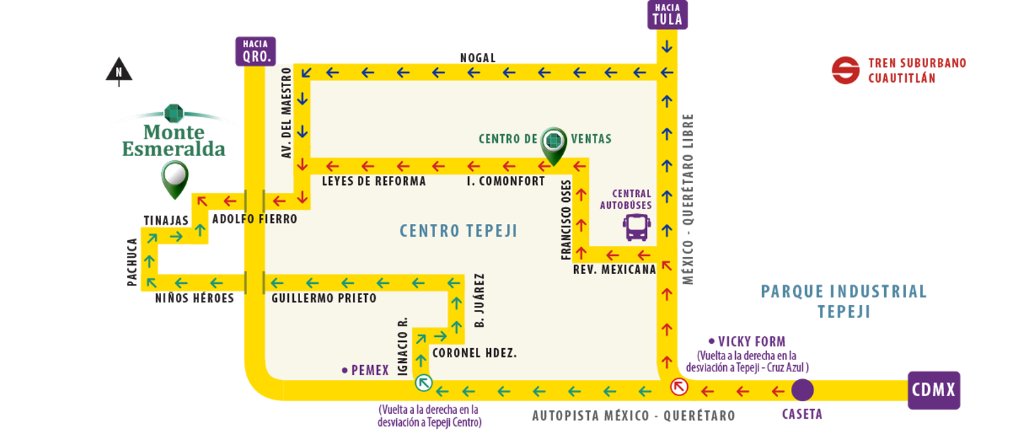 Ruta 1: Acceso desde la autopista MEX - QRO. (a la altura de la planta Vicky Form)